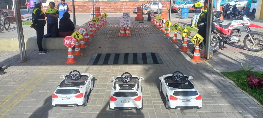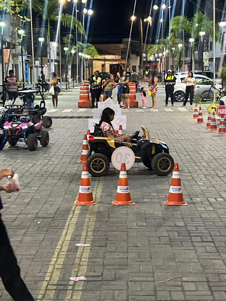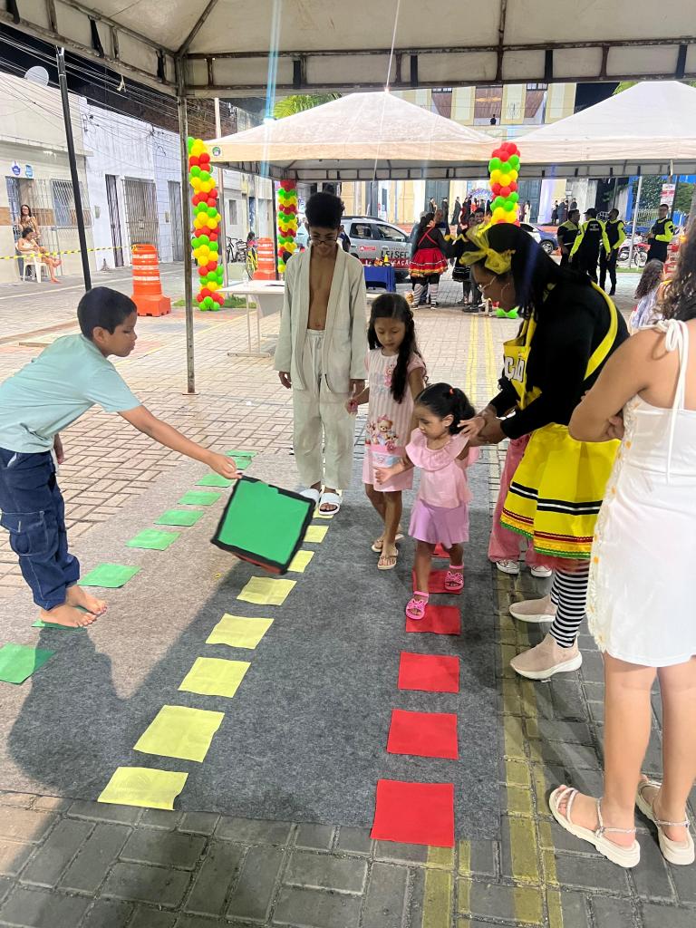 A atividade contou com uma Escolinha de Trânsito, onde os pequenos participaram de um circuito educativo, brincadeiras lúdicas e jogos da memória, aprendendo de forma prática e divertida sobre segurança no trânsito.